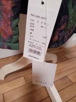SIZE フリーサイズ 綿 100 ポリエステル 100 身幅 53 着丈 108