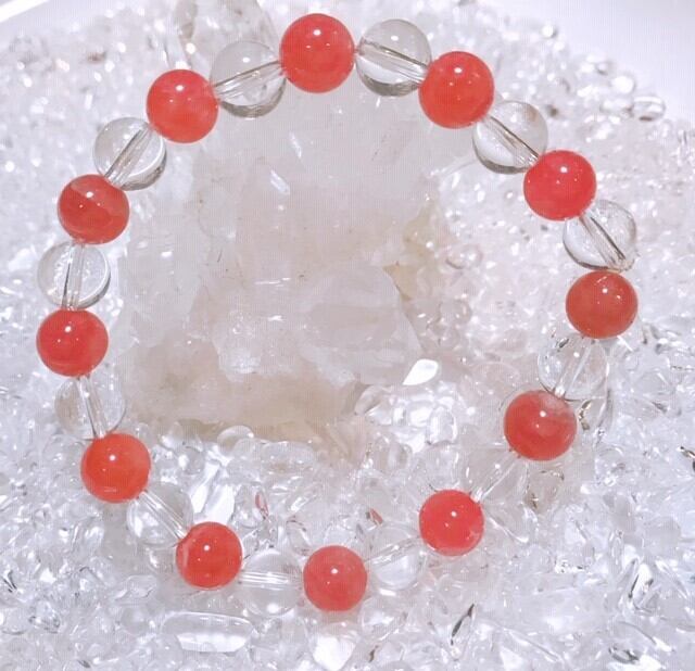 愛と情熱をもたらすンかローズに、他の石のパワーを引き出す水晶を組み合わせたブレスレットです。深いヒーリングのパワーで持ち主を包み、魅力を引き出すことで運命の出会いを引き寄せると言われています。