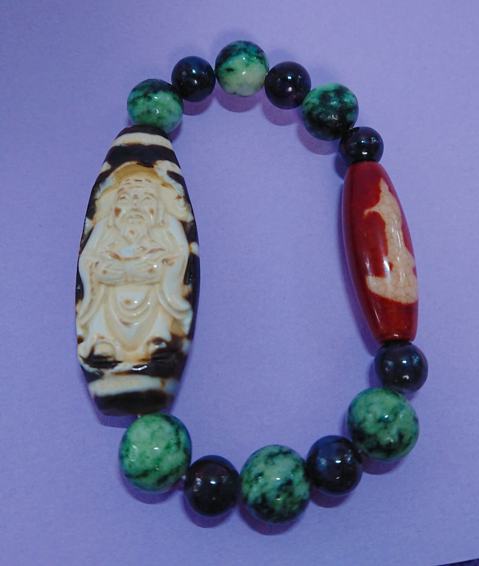 観音天珠とは、精神安定・不安解消に良いとされ、厄災を防ぎ、持ち主の平和や幸福を守ってくれると言われている天珠です。