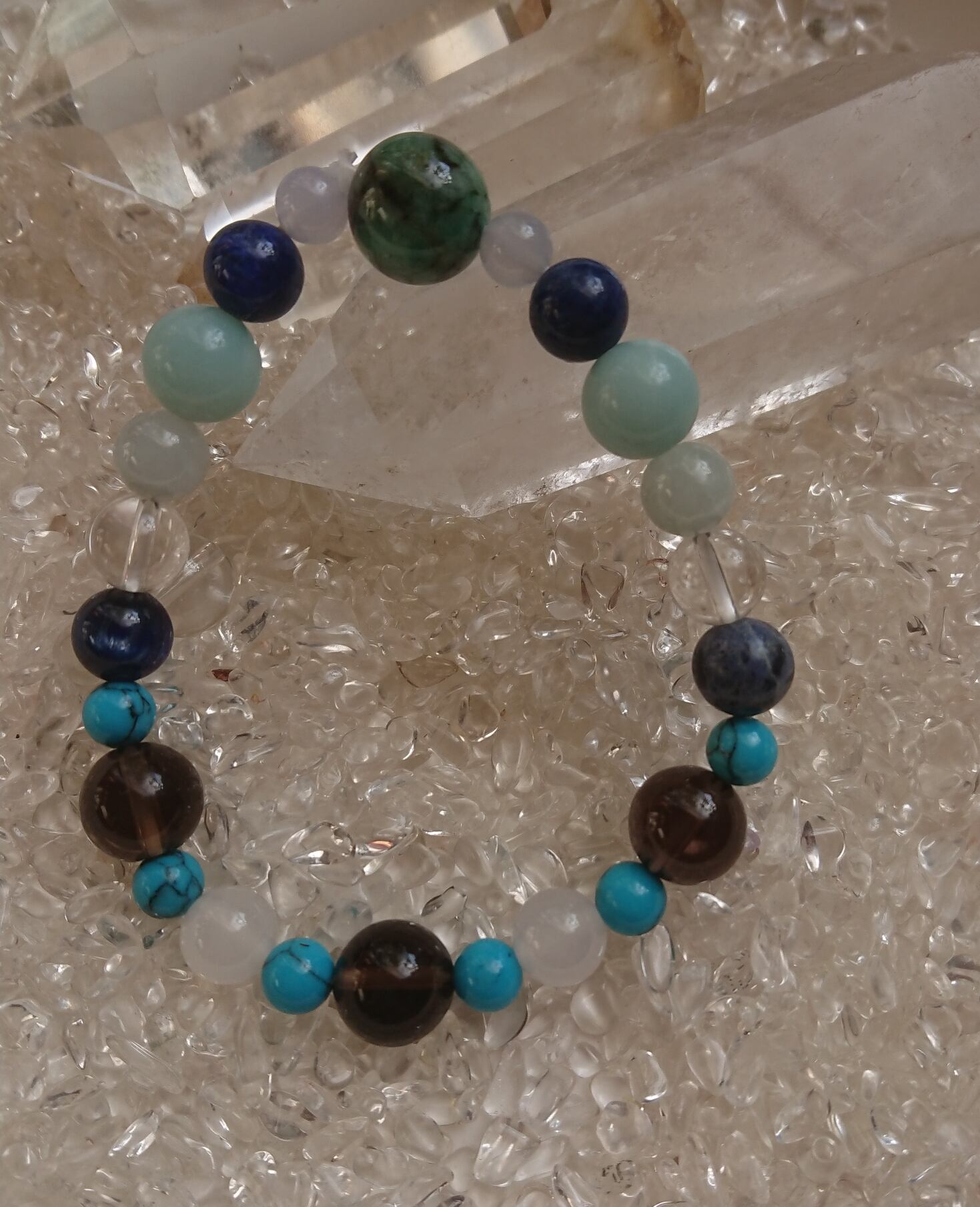 ターコイズは、その空色を思わせる色彩のように非常に明るいエネルギーをもち、ネガティブなエネルギーを払いのけ、困難を乗り越えて願望を達成するためのサポートをしてくれます。