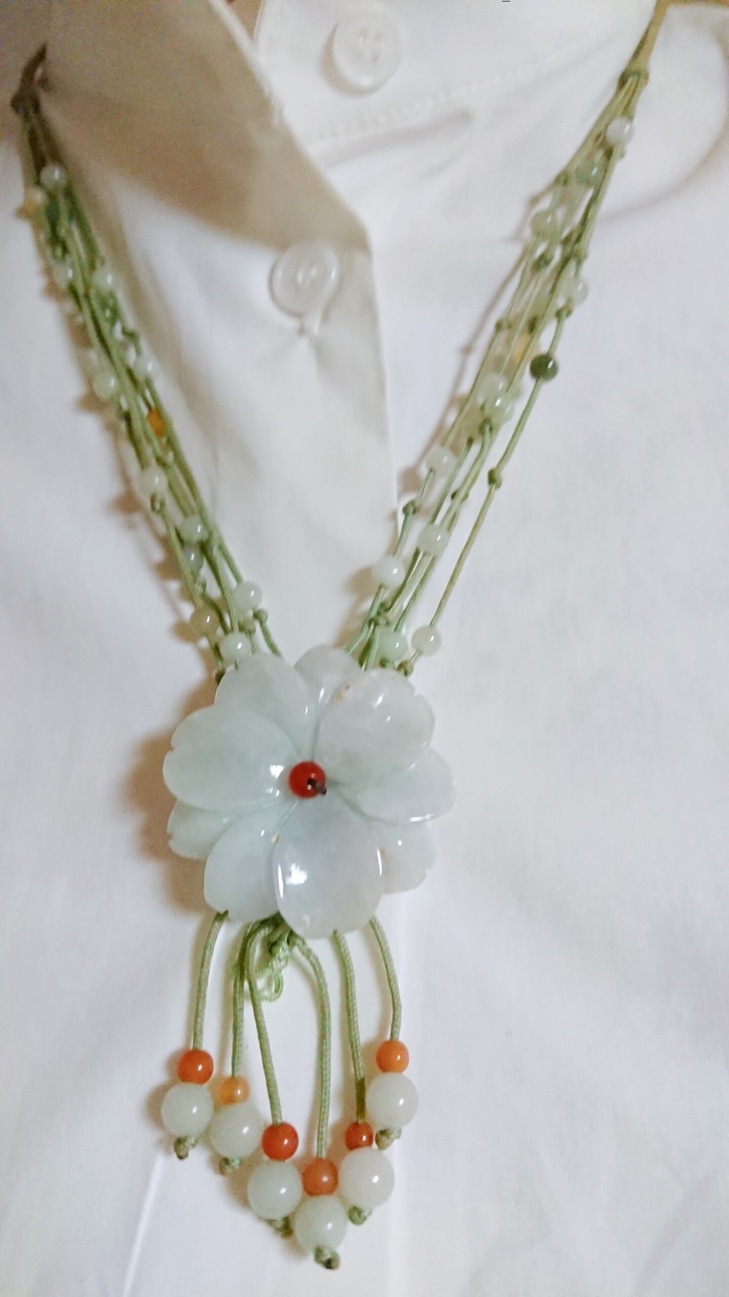 「東洋のエメラルド」ともいわれる翡翠を使った翡翠ネックレスは、細やかなデザインを施した、優しい雰囲気。そのさわやかな緑の色が胸元を美しく彩ります。