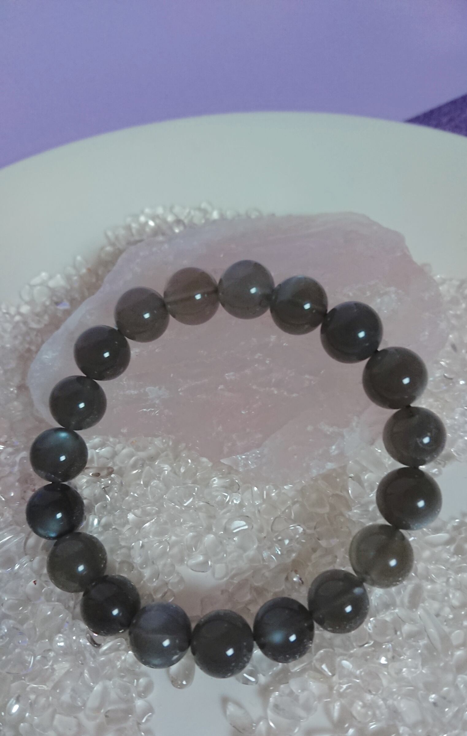 このように一般的に良く知られている淡いカラーのムーンストーンは、女性の守護石としてや永遠の愛の象徴として、そして愛と癒しの石として知られていますが、このブラックムーンストーンには、ムーンストーンのような「愛」による癒しではなく、過去のトラウマの傷を癒す力を持っています。