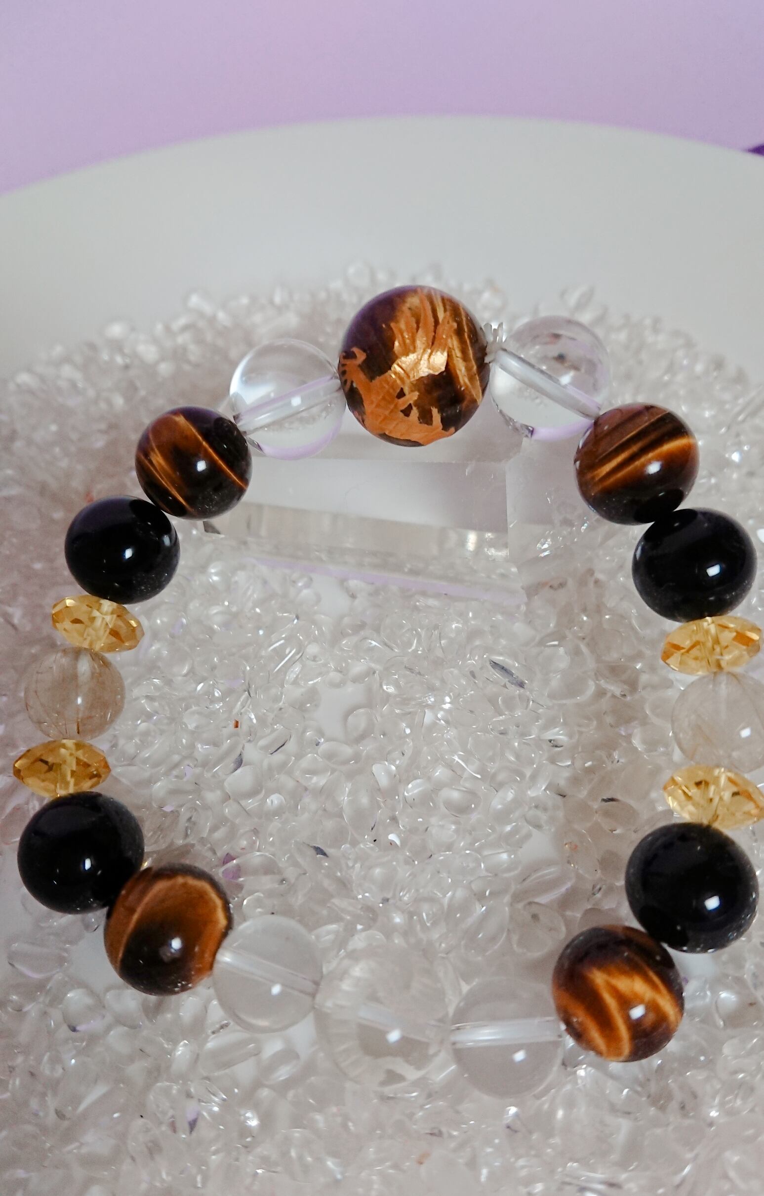 洞察力や決断力を養い、最良の決断へと導き、仕事運や金運を高めて願望の成就をサポートしてくれる効果があるといわれています。物事の本質を見極める力を与えるとされ、新規に事業をはじめる人や、拡大を考えている人、新しいことにチャレンジしようとする人に豊かな実りをもたらしてくれるでしょう。古くから、「幸運を招く石」「霊力を授ける聖なる石」として世界各地で珍重されてきました。古代エジプトでは、虎の目はすべてを見通すとして、神々の像の眼の部分に使用されています。広い視野を持たせ、物事の本質を見極める力を与え、成功へと導いてくれるでしょう。タイガーアイは、古くから、富を引き寄せ、ビジネスの成功をつかさどるといわれてきました。信頼できる協力者や助言者を探す効果ももつといわれています。また、邪悪なものをはね返すお守りとして用いられてきたタイガーアイは、迫りくる危険を回避させるといいます。特に、対人関係におけるトラブルが生じたときや、衝突を避けたいときに身につけるとよいでしょう。ネガティブなエネルギーの影響を受けやすい人や、人ごみが苦手な人のお守りとしても最適なパワーストーンです。活性化と安定のパワーをもたらすタイガーアイは、理想と現実のバランスをとるといわれています。理想が高くて、現実がうまくいかないときにもよいでしょう。