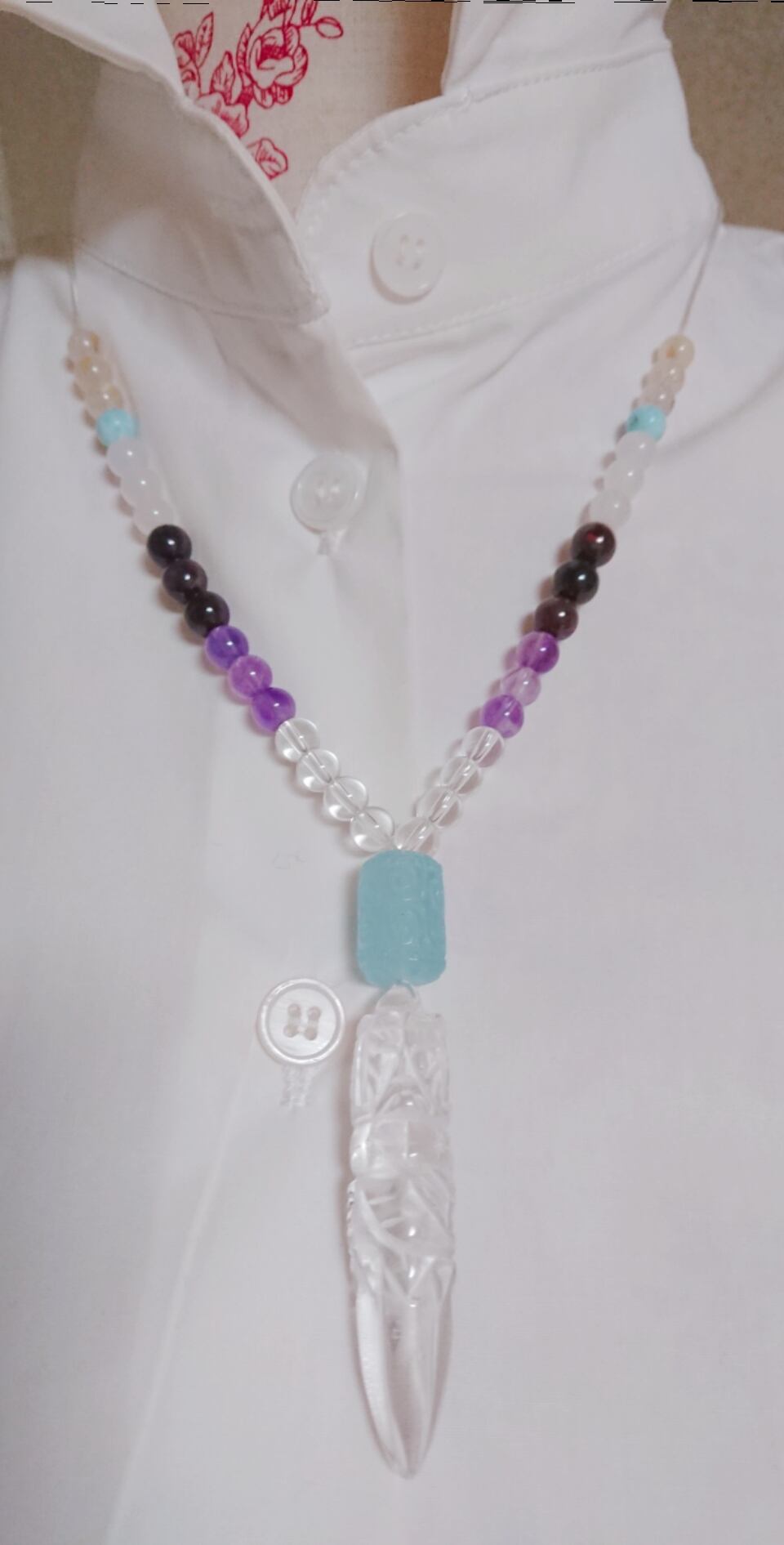 すべてのものを浄化し、生命力を活性化させ、潜在能力を引き出し、直感力、創造力をはぐくむなど、石の中でも万能的な存在です。あらゆるもの・こと・人に対応するとされ、古来より魔よけや、お守り、呪術に使用されてきました。増幅のパワーをもつとされ、エネルギーを高めてくれるといわれています。潜在的な能力の目覚めを促し、人格を高めてくれるでしょう。精神的な成長を願うときに身につけると、霊性に磨きをかけてくれるはずです。周囲の状況に惑わされず、冷静に物事を見極め、困難に打ち克つ力が欲しいときにもよいでしょう。今までのパターンから抜け出して、ステージアップできるといわれています。無色透明の水晶は、さまざまな雑念を取り去り、集中力を高める効果があるといいます。達成したい夢や目標があるときは、願いを込めて身につけることをおすすめします。強力な浄化のパワーを秘めた水晶は、ヒーリングとパワーアップの効果をあわせもつ万能パワーストーンです。持ち主を成長させるとされるため、状況がよくなるまで身につけてみてください。あらゆるエネルギーを高め、お守りとして心身を守ってくれるでしょう。水晶は組み合わせた他のパワーストーンの個性を引き出し、その能力を十分に発揮させるといわれています。すべての石の浄化を助け、清浄に保たせてくれるでしょう。