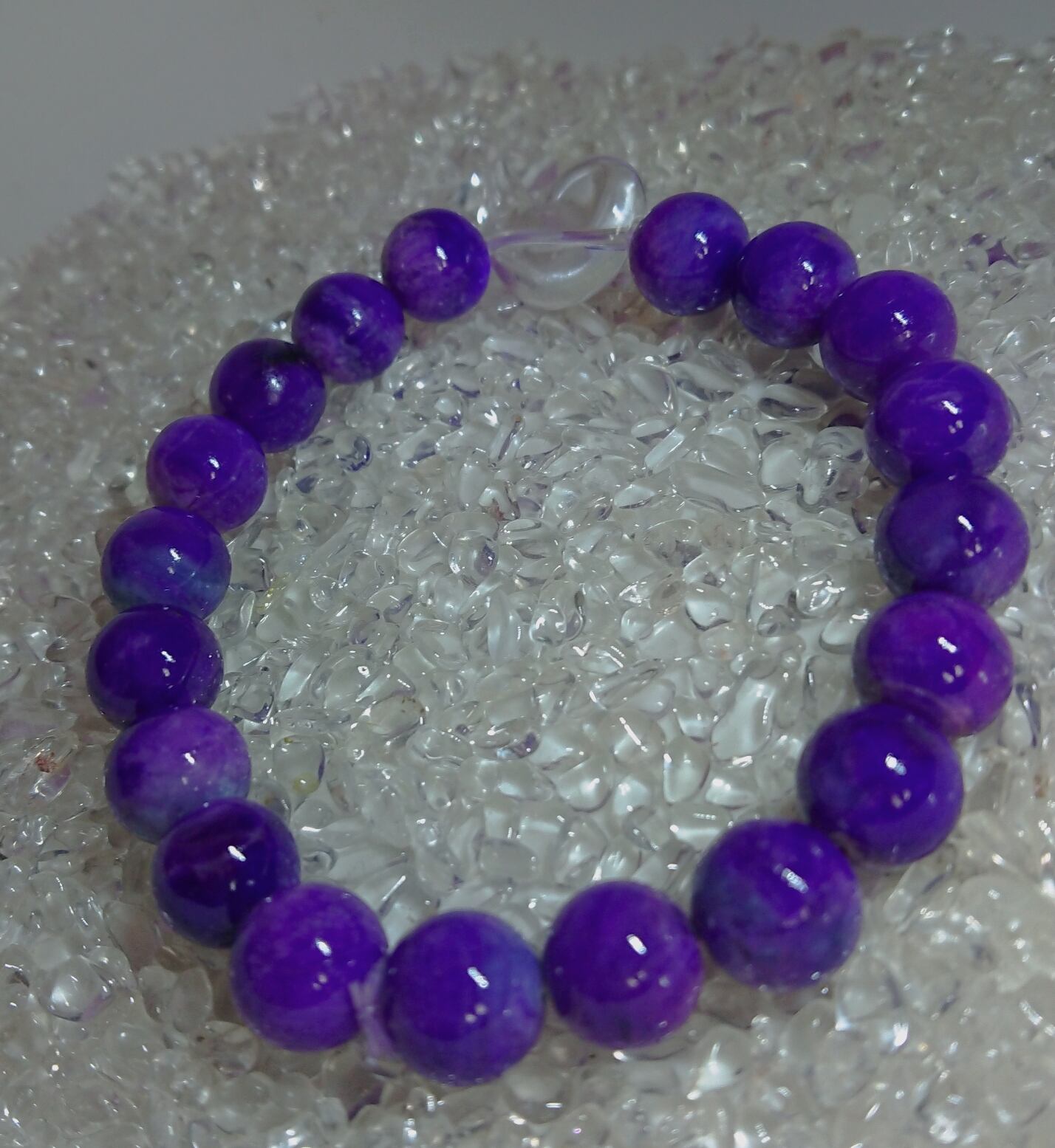 東洋を代表する最強ヒーリングストーンであるスギライトは、ヒーリング効果に優れ、ストレスを癒し、平穏さを与えるといいます。20世紀に発見された石の中でも、格別のヒーリングパワーをもつといわれています。特に、ストレス解消に高い効果があるとされ、心の傷を癒すエネルギーがあるといいます。「癒しの石」と呼ばれるスギライトは、怒りや悲しみなど、マイナスの感情を取り除いて浄化し、精神の安定をもたらす作用があるといわれています。仕事や恋愛でのトラブルや、将来への不安などで、葛藤におちいったときに身につけてみてください。精神力を強化して、逆境や困難に打ち克つパワーを与えてくれるでしょう。もっとも強い癒しの作用をもつとされるスギライトは、忙しい現代人の精神疲労を癒してくれるといわれています。紫色は、霊性を高める聖なる色とされていますが、この石も人徳を高め、誰をも包み込む深い愛情を授けるといいます。「永遠の愛の石」とも呼ばれ、心身を愛で満たし、邪悪なものから身を守ってくれるでしょう。また、心身を活性化し、自然治癒力を引き出すともいわれています。心身を癒すことで、いつもの日常に新たな感動や発見が生まれ、活力に満ちた日々を取り戻すことができるようになるはずです。創造力や発想力を高めたいと願う人にもおすすめのパワーストーンです。