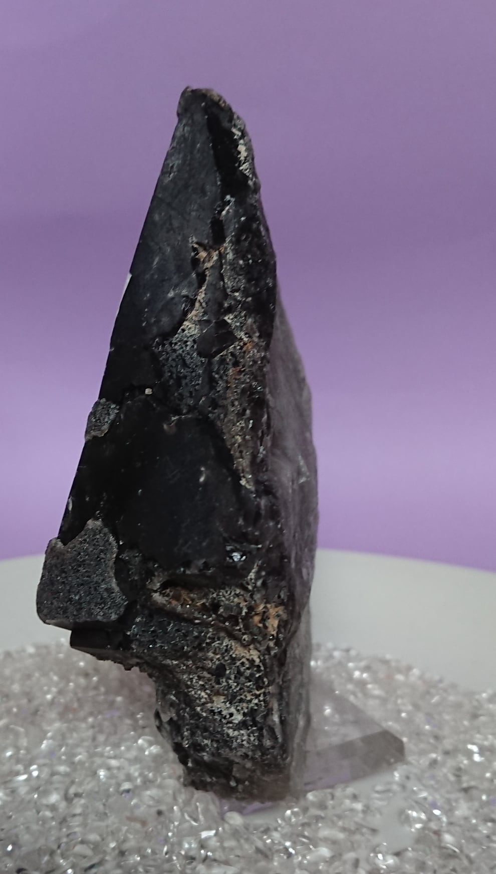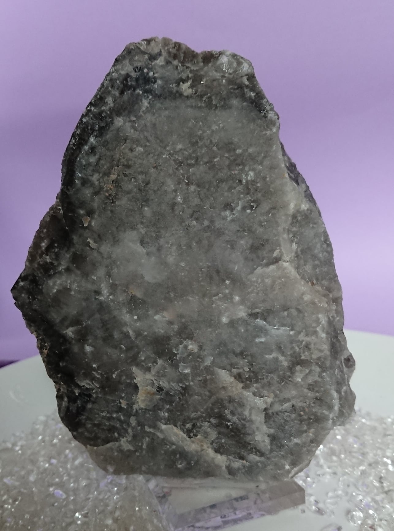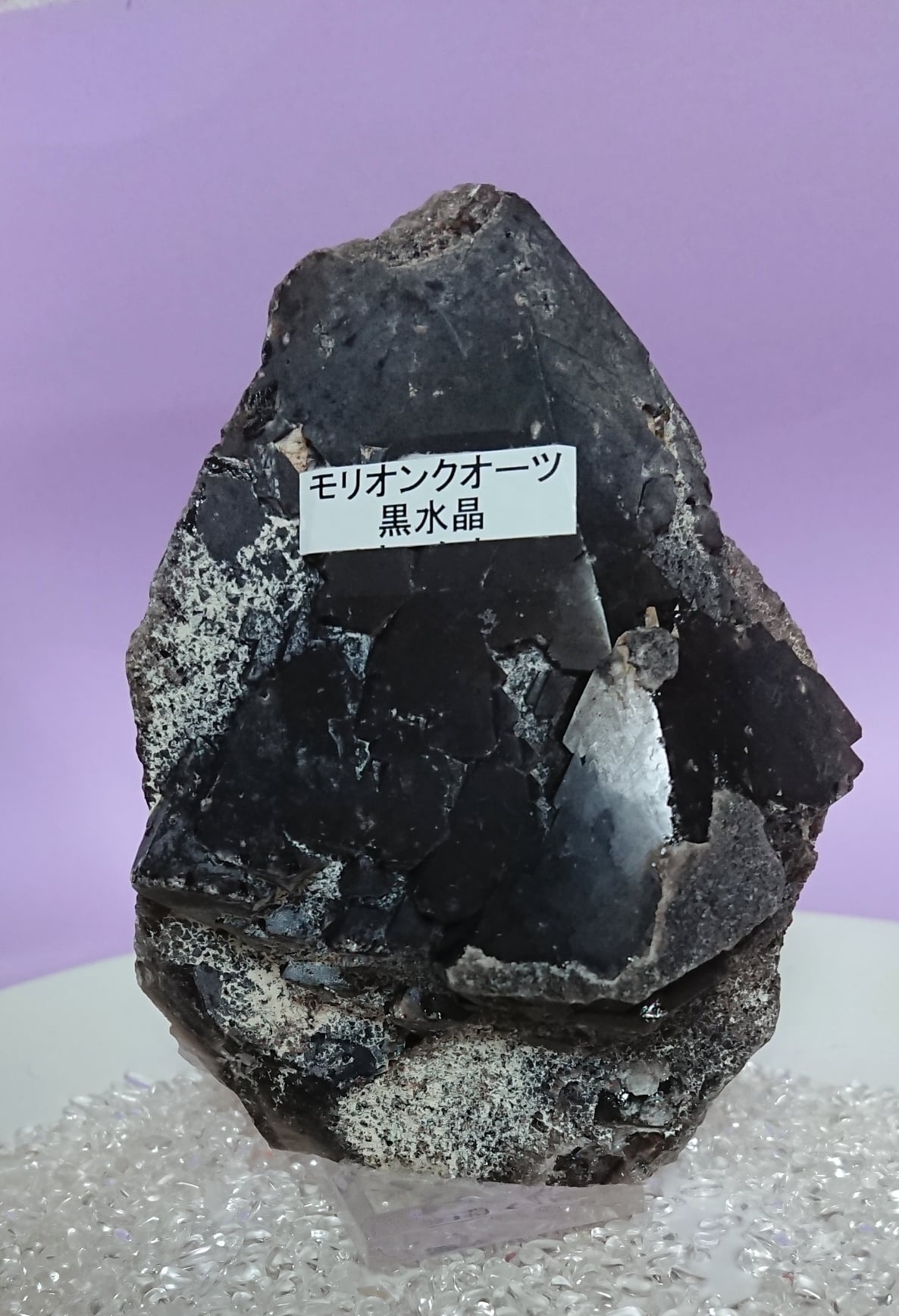 茶水晶と同じく自然の放射線の影響で暗色に変化した水晶。そのため水晶の透明度に関わらず、見た目で黒く見えるものは黒水晶(モリオン)、茶色のものは煙水晶と呼ばれるようです。黒水晶(モリオン)も水晶ですので強い光に当てると透けます。