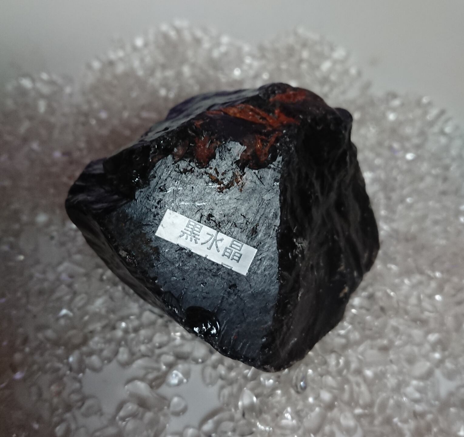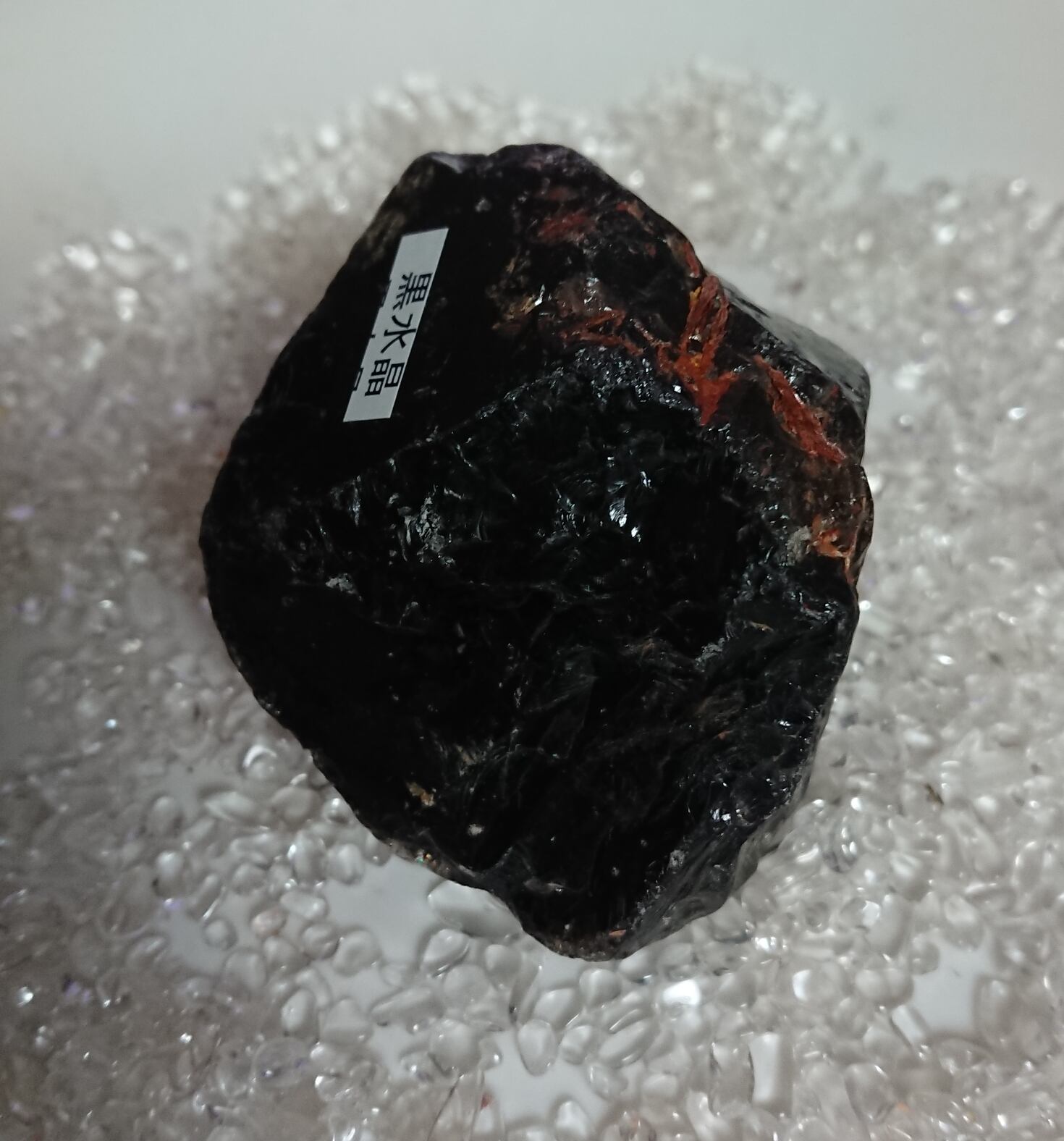 茶水晶と同じく自然の放射線の影響で暗色に変化した水晶。そのため水晶の透明度に関わらず、見た目で黒く見えるものは黒水晶(モリオン)、茶色のものは煙水晶と呼ばれるようです。黒水晶(モリオン)も水晶ですので強い光に当てると透けます。