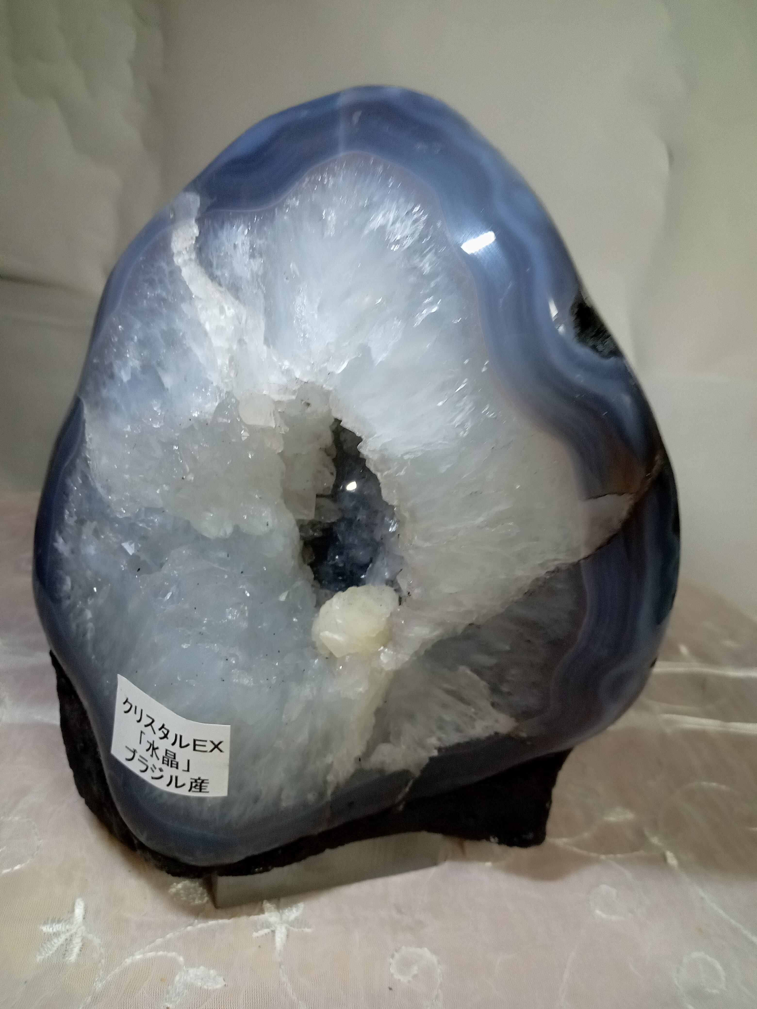 瑪瑙の原石を二つに割り、内部が水晶化したものを天然石聚寶盆(トレジャーメノウ)と呼びます。空洞化した部分に良い気を溜め家の中に龍穴を作り出すと言われています。