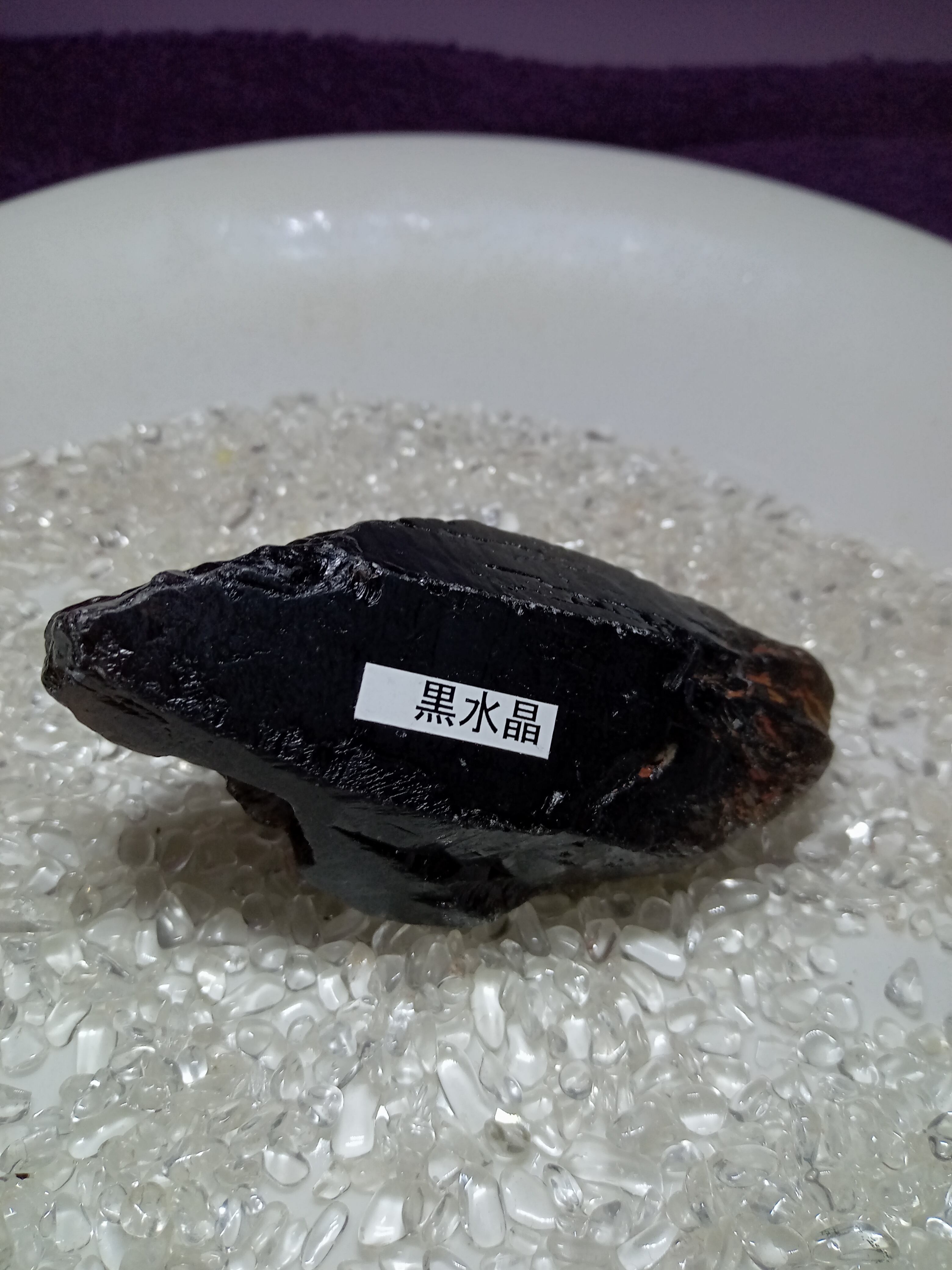 茶水晶と同じく自然の放射線の影響で暗色に変化した水晶。そのため水晶の透明度に関わらず、見た目で黒く見えるものは黒水晶(モリオン)、茶色のものは煙水晶と呼ばれるようです。黒水晶(モリオン)も水晶ですので強い光に当てると透けます。