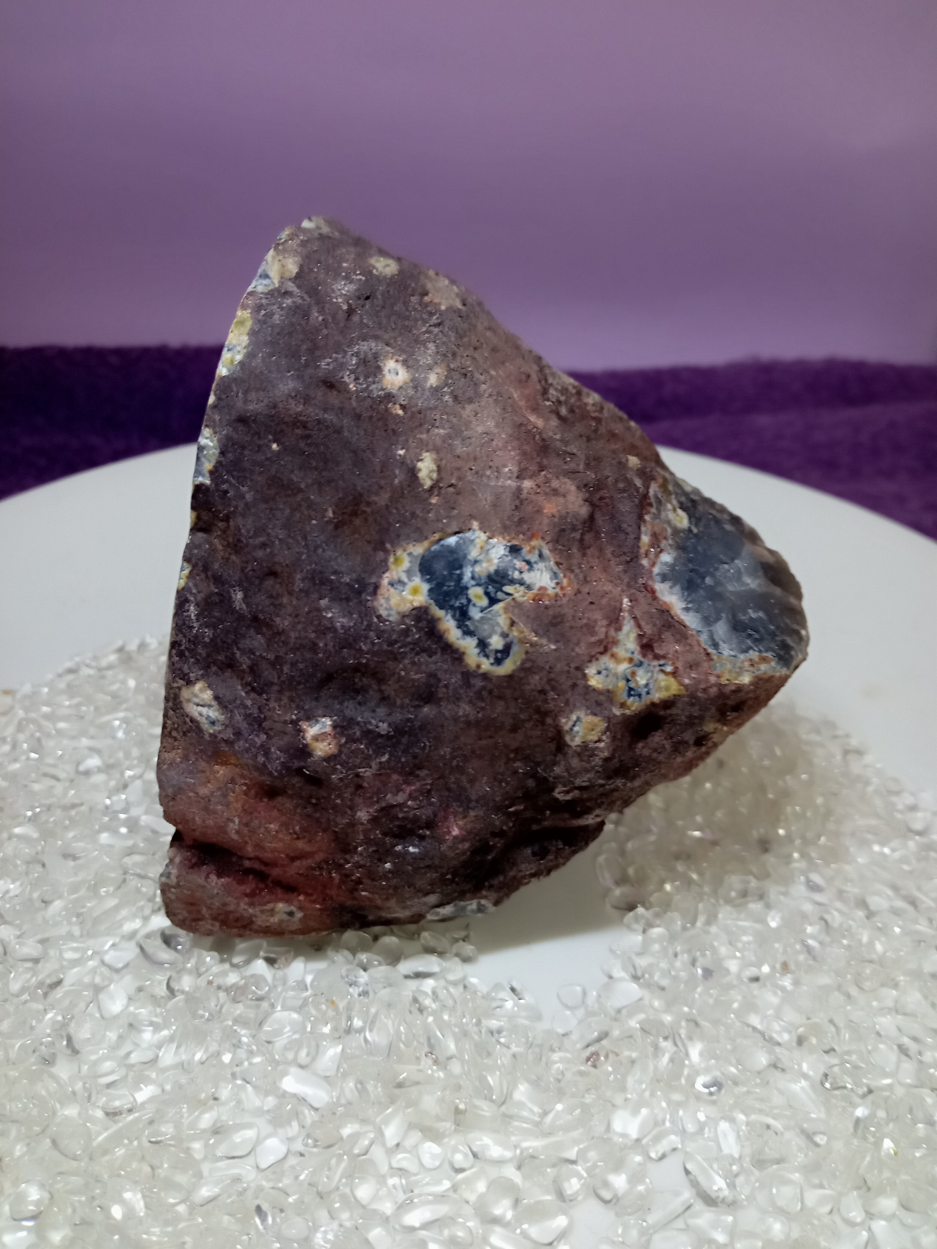 クォーツ(石英)の変種。火山岩のような岩石中に団塊状で産出し、中を割ってみるとさまざまな色や縞模様を示します。火山岩の内部にできたドーム型空洞にケイ酸分を含んだ熱水がたまって作られます。