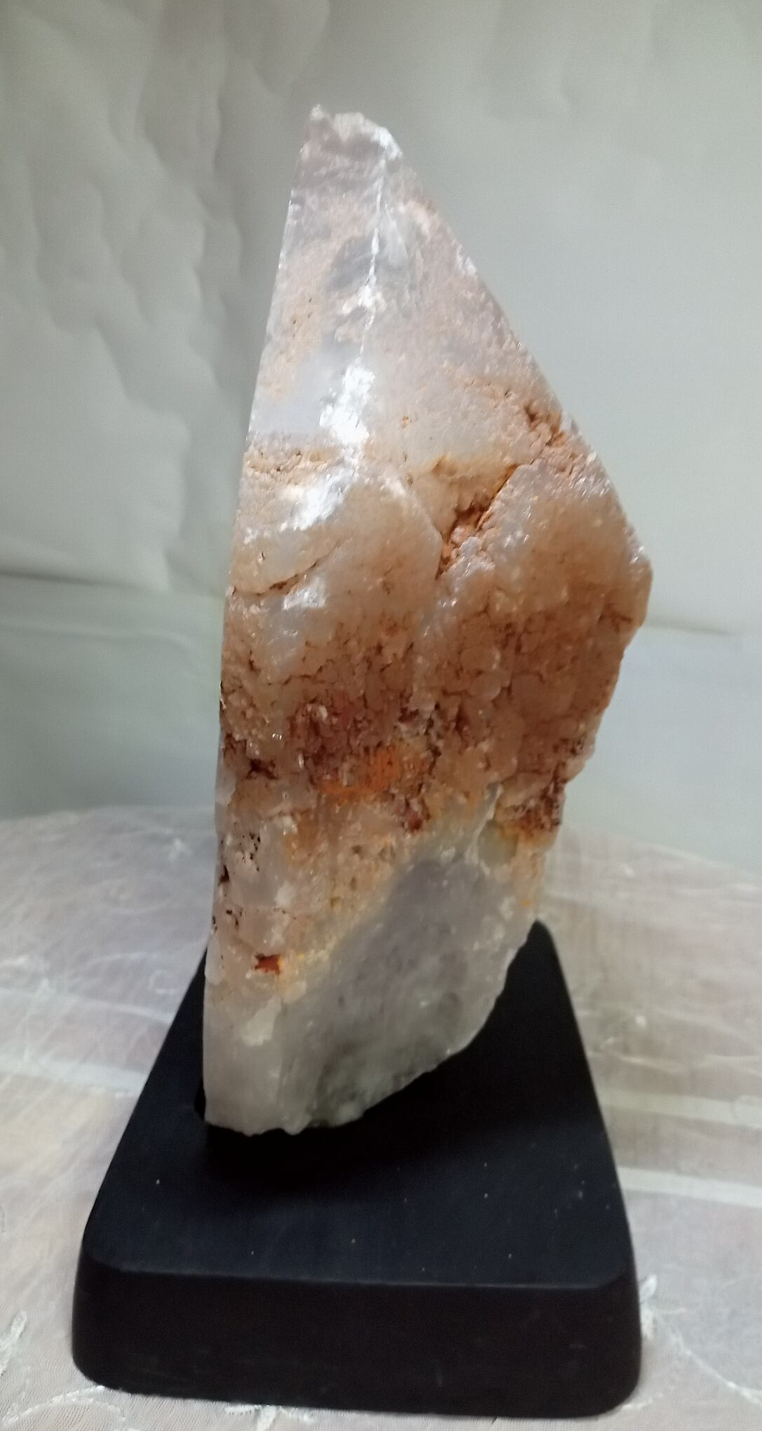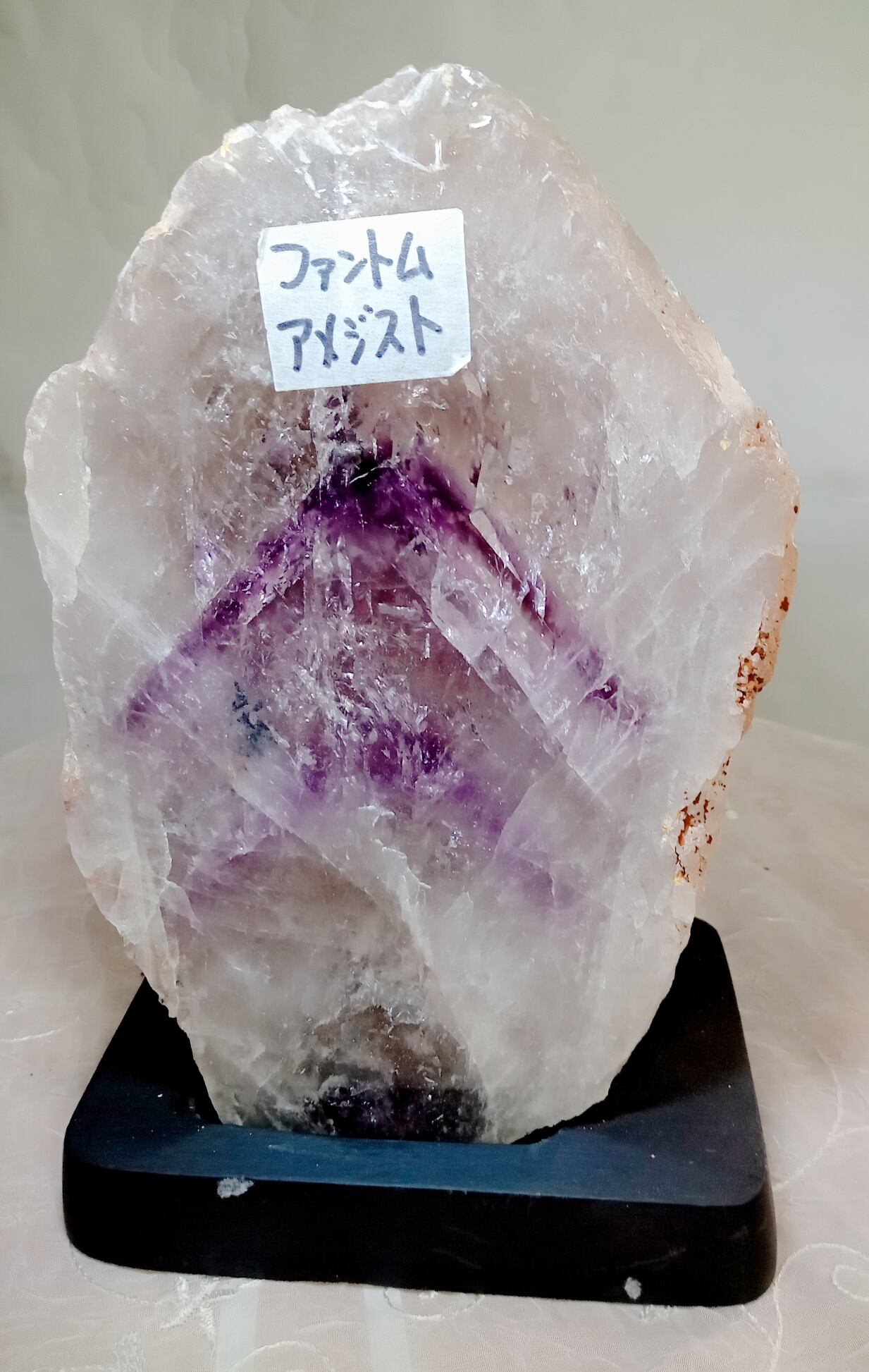 ファントムアメジストというのは普通のアメジストよりもやや特殊なパワーストーンです。というのも石として結晶になる段階で途中で成長が止まり、水晶など別の鉱物の結晶が付き、その後成長を再度始めることでファントムアメジストとなります。つまりアメジストと別の結晶によって境目が出来て美しい状態になった石ということです。