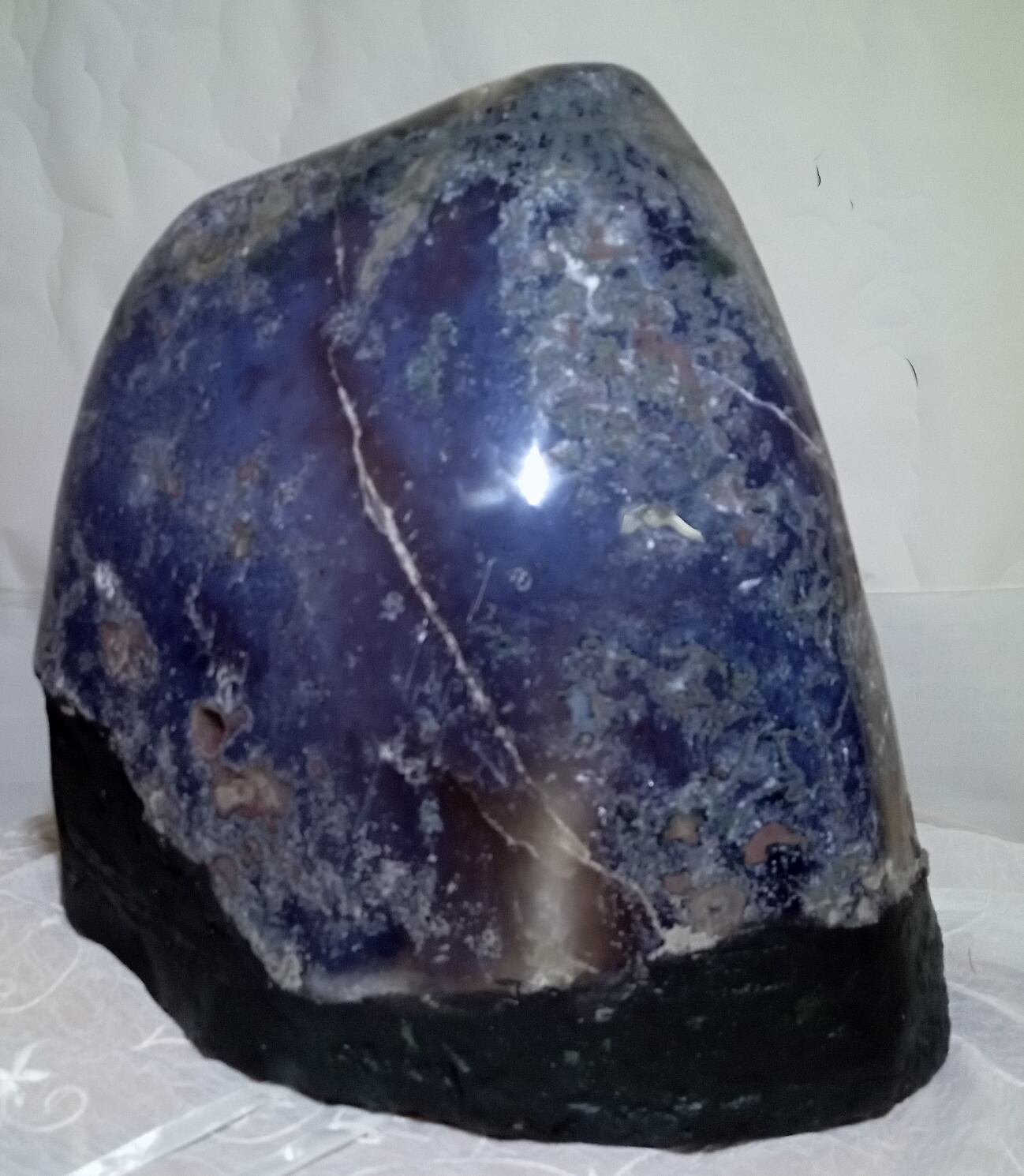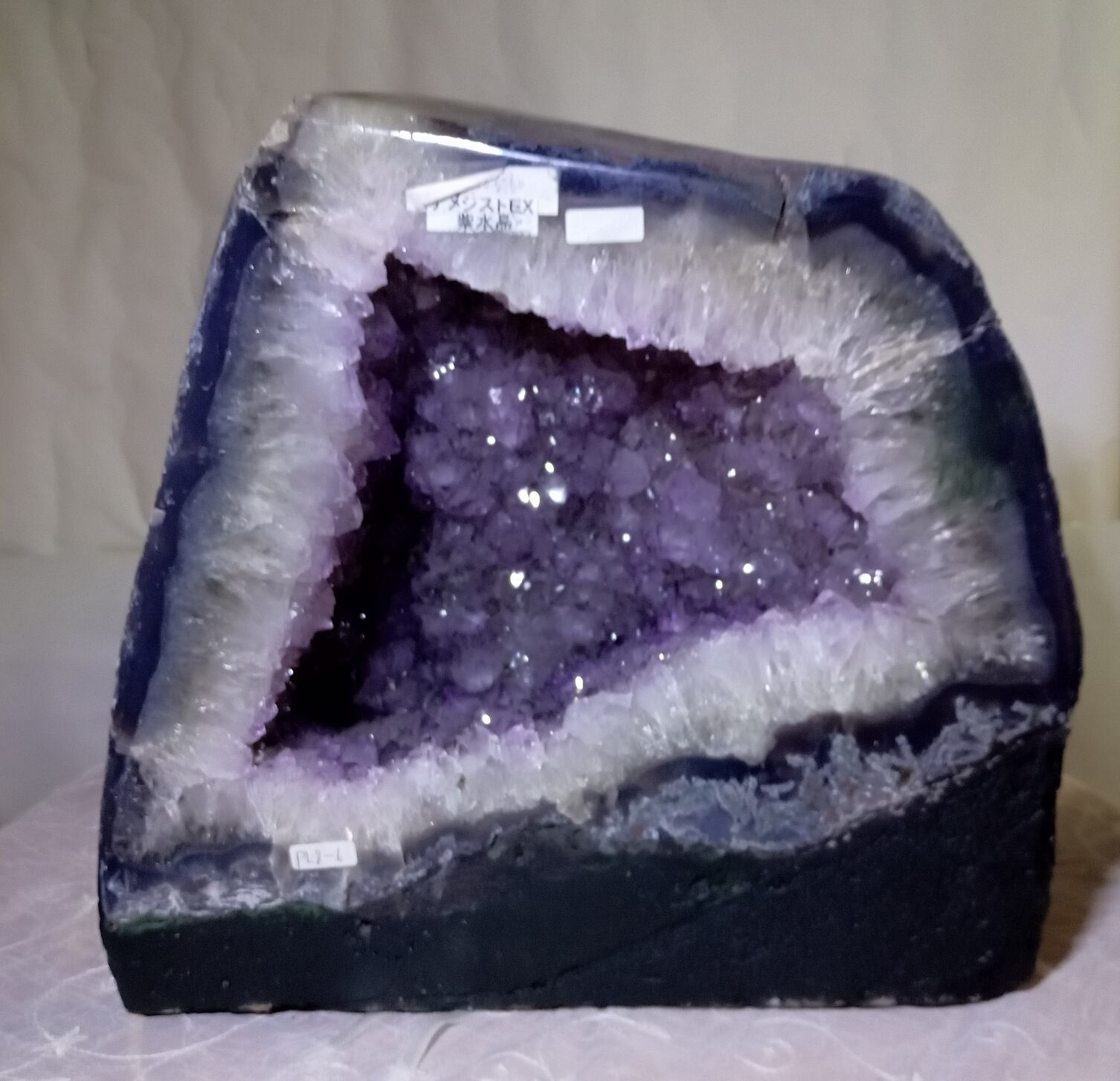 水晶は通常岩石の上に生成されますが、地層や岩の内側に洞窟状にできたものをアメジストドームといいます。アメジストの原石を半分に割り断面を美しく研磨すると、迫力と存在感、そしてエネルギーに満ちた置物に仕上がるのです。