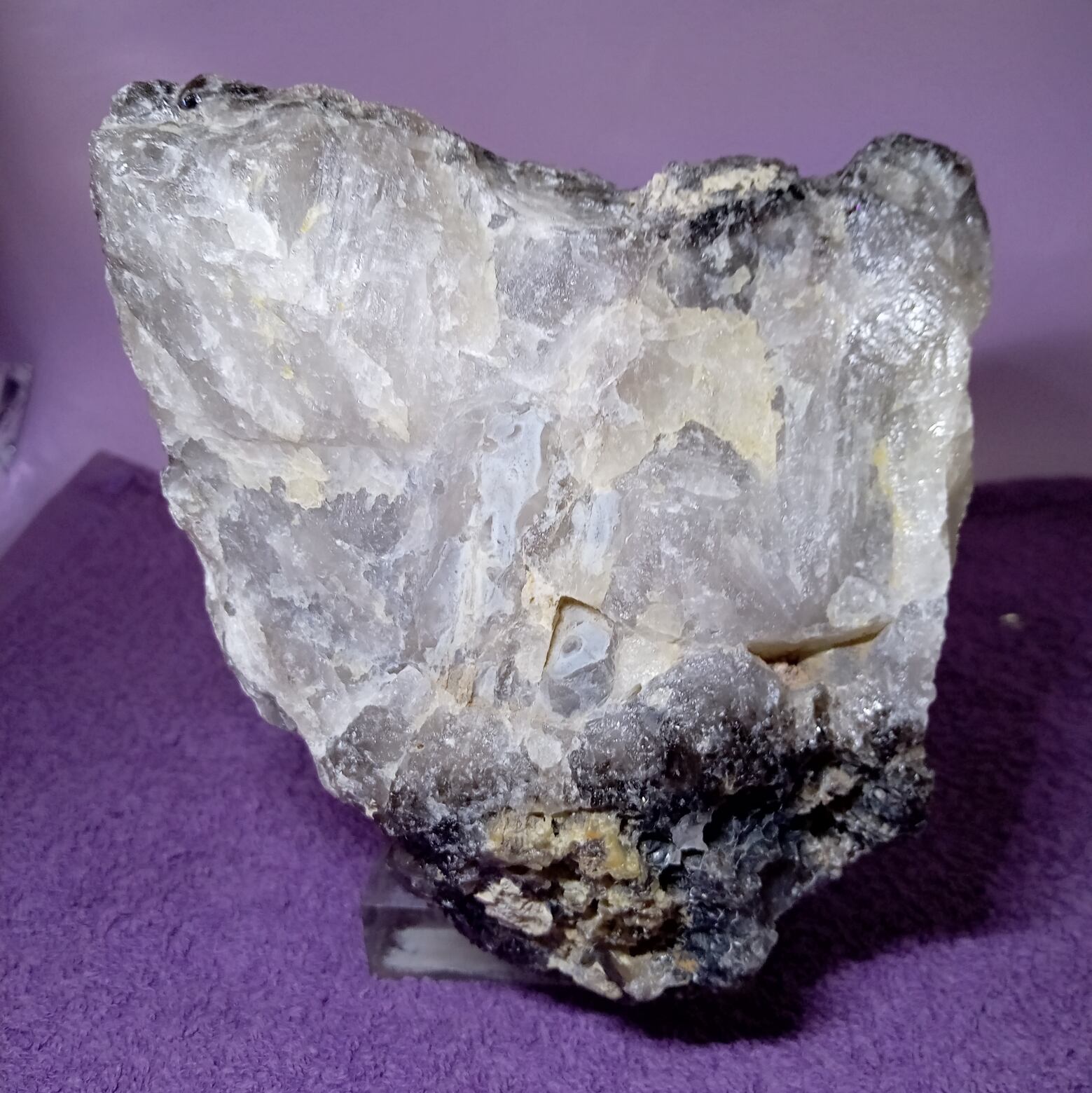 茶水晶と同じく自然の放射線の影響で暗色に変化した水晶。そのため水晶の透明度に関わらず、見た目で黒く見えるものは黒水晶(モリオン)、茶色のものは煙水晶と呼ばれるようです。黒水晶(モリオン)も水晶ですので強い光に当てると透けます。