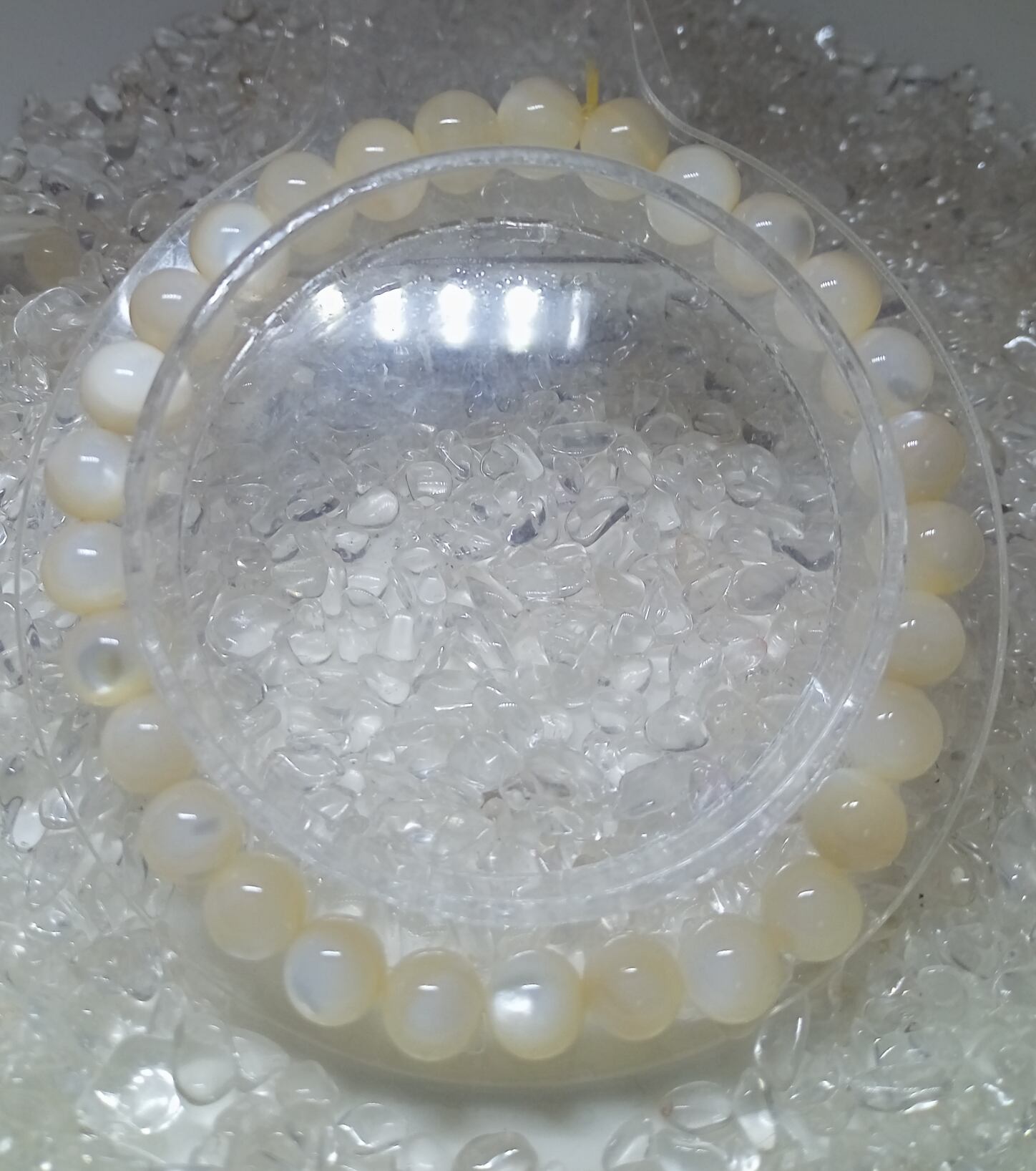 ☆使用している天然石☆ ・真珠貝 6㎜ ☆天然石の意味☆ パールの石言葉には「純粋無垢・純潔・富・健康」があり、母貝から育まれることから家族の愛情の象徴とも言われています。 気持ちを鎮め、ポジティブにしてくれる効果があると言われているので、感情が不安定な時にお守りとして身に着けるにもおすすめです。