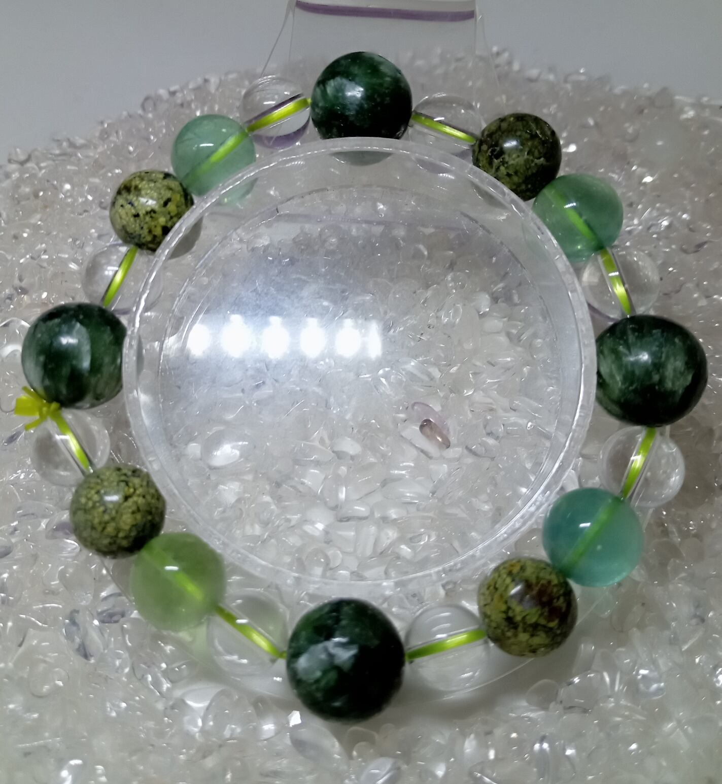 フローライトは色別にエネルギー的特性が多少異なります。あくまでも傾向としてですが、パープル系は明晰性や感受性を高める傾向、グリーン系は癒し的に働き、グラデーションカラーのものは、想像力を高める傾向が強いようです。