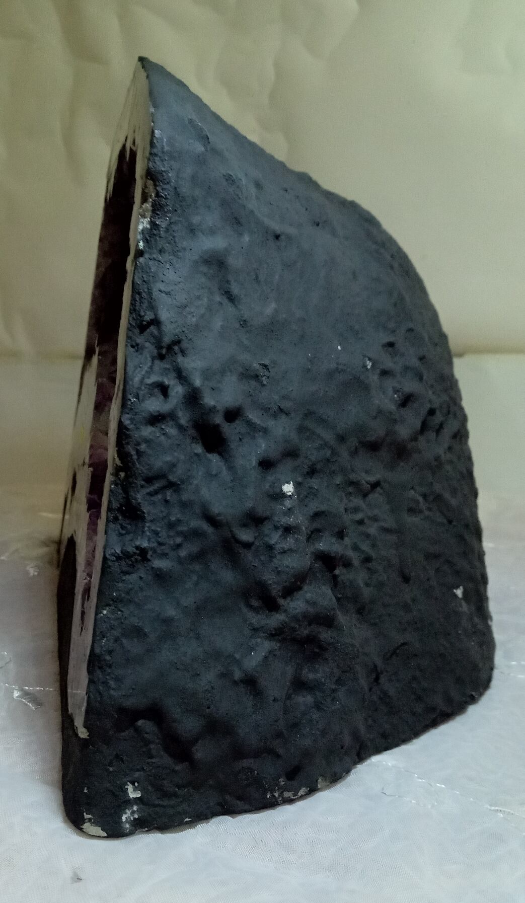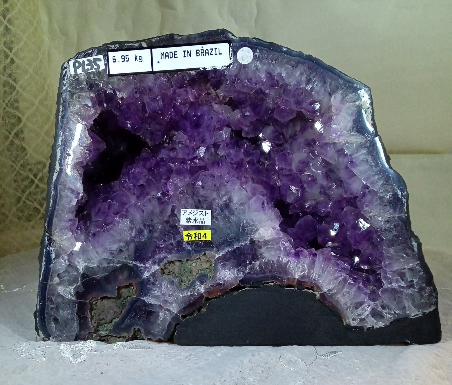 水晶は通常岩石の上に生成されますが、地層や岩の内側に洞窟状にできたものをアメジストドームといいます。アメジストの原石を半分に割り断面を美しく研磨すると、迫力と存在感、そしてエネルギーに満ちた置物に仕上がるのです。