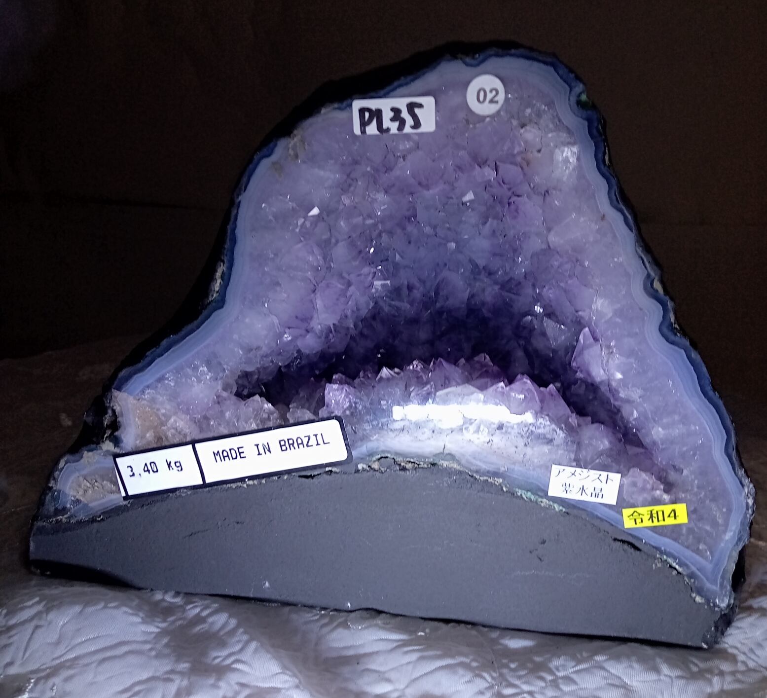 水晶は通常岩石の上に生成されますが、地層や岩の内側に洞窟状にできたものをアメジストドームといいます。アメジストの原石を半分に割り断面を美しく研磨すると、迫力と存在感、そしてエネルギーに満ちた置物に仕上がるのです。