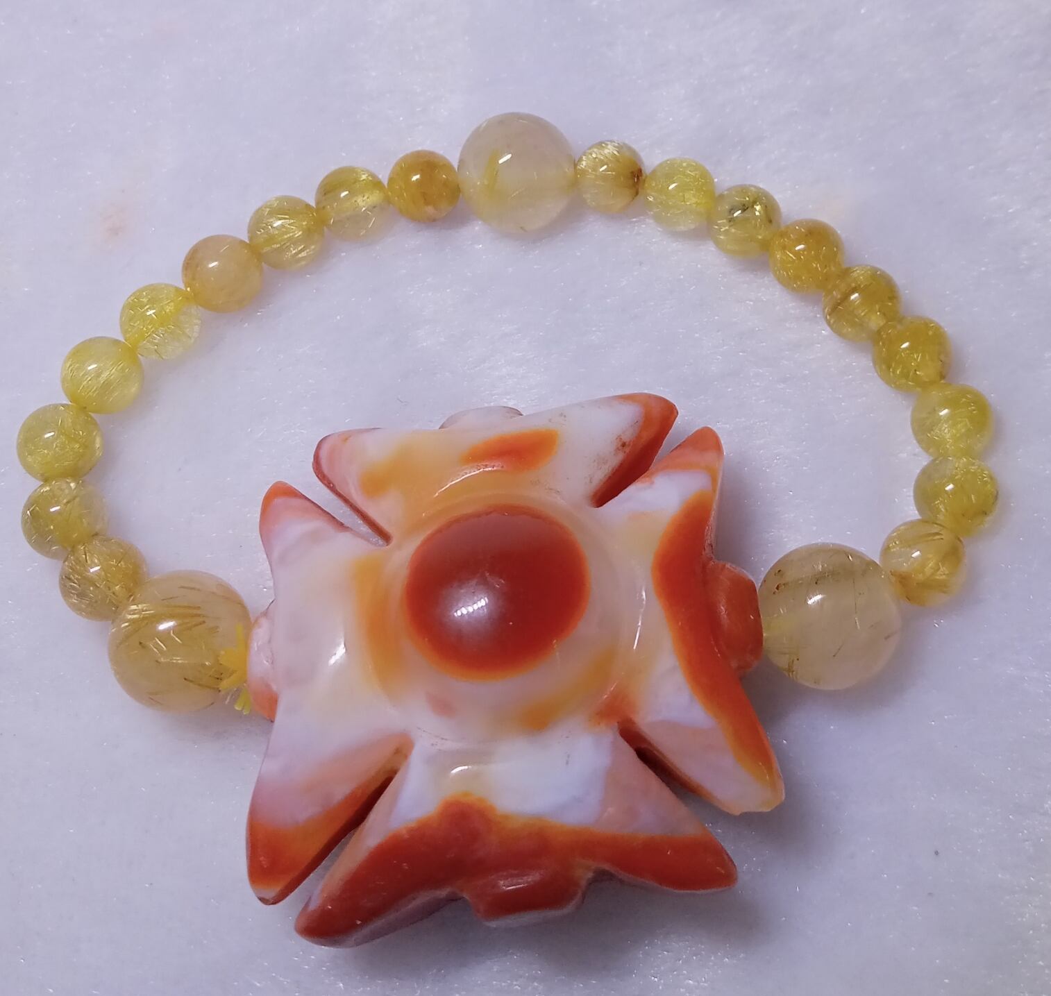 ルチルクォーツはクォーツの一種ですが、ルチルがクォーツのパワーをいっそう高めるため、通常のクォーツよりも強力なエネルギーをもつといわれています。内部に『金色の線』が入っていることから『金銭』を呼び込むパワーストーンとされ、特に、黄金色に美しく輝くものは金運のお守りとして古くから珍重されてきました。